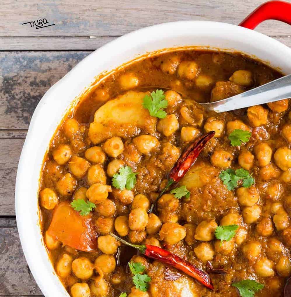 CREMOSO MIX DI PATATE E CECI CON SPEZIE E FRESCHE FOGLIE DI CURRY