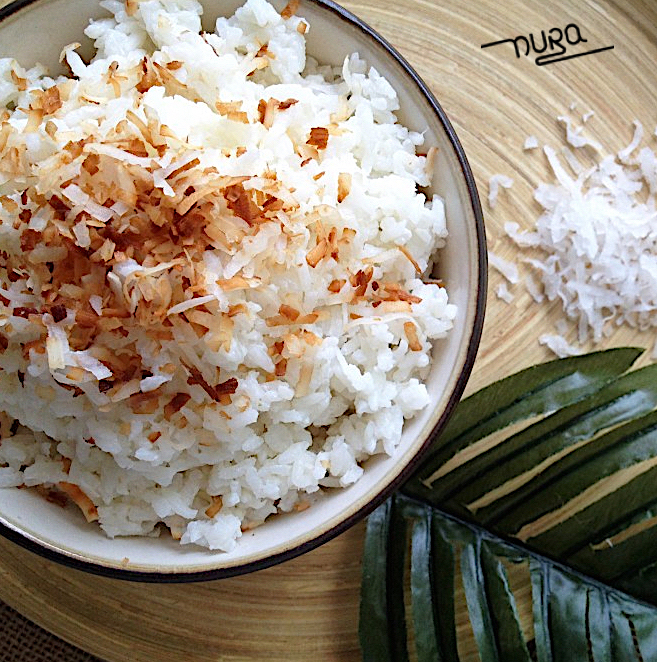RISO BASMATI AL COCCO CON SEMI DI MOSTARDA E FRESCHE FOGLIE DI CURRY (perfetto come base per ricette con carne o verdure)