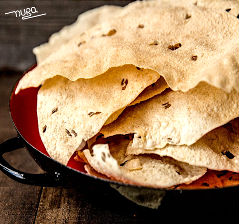 CROCCANTI SCHIACCIATINE DI FARINA DI CECI CON SEMI DI CUMINO (10 piccole sfoglie)