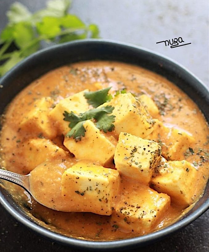 FORMAGGIO “PANEER” (REALIZZATO A MANO DA NOI DA LATTE FRESCO ITALIANO) IN UNA CREMOSA E DELICATA SALSA CON POMODORO E ANACARDI
