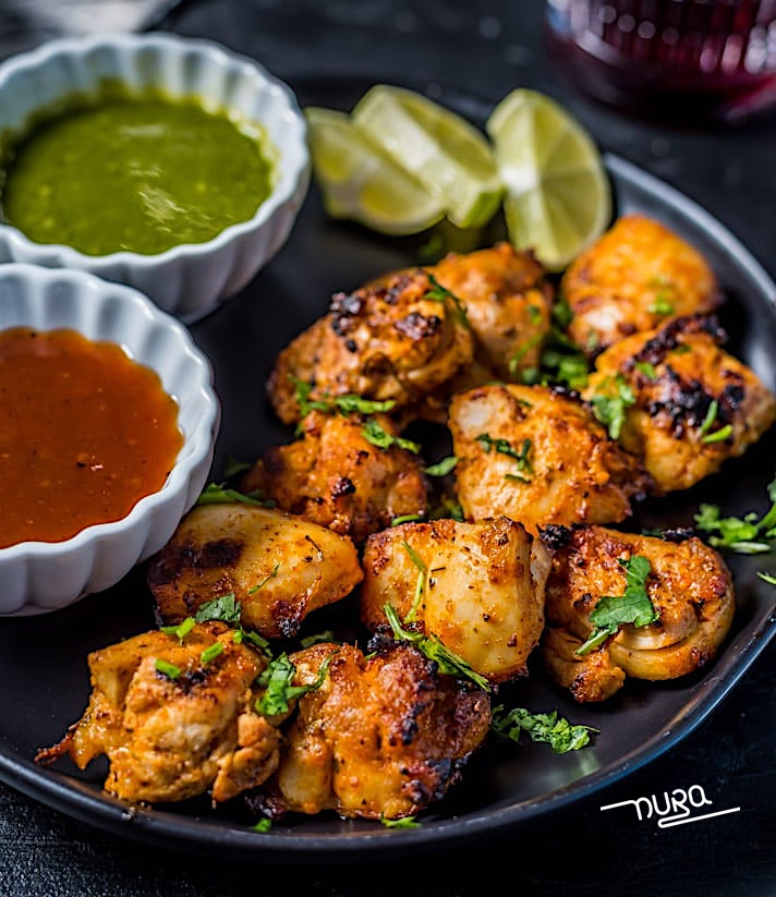BOCCONI DI POLLO MARINATO CON YOGURT E SPEZIE E COTTO NEL FORNO “TANDOORI” (consigliamo di accompagnarlo con la KERALA SALAD o con la salsa RAITA).